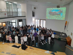Wir treffen uns regelmäßig als Schulgemeinschaft im Foyer, um klassenübergreifend an religionspädagogischen Themen zu arbeiten. Diese Zusammenkunft nennen wir "Religionspädagogisches Projekt". Oft laden wir Referentinnnen und Referenten ein. Die folgenden Berichte geben einen kleinen Einblick in besondere Treffen: