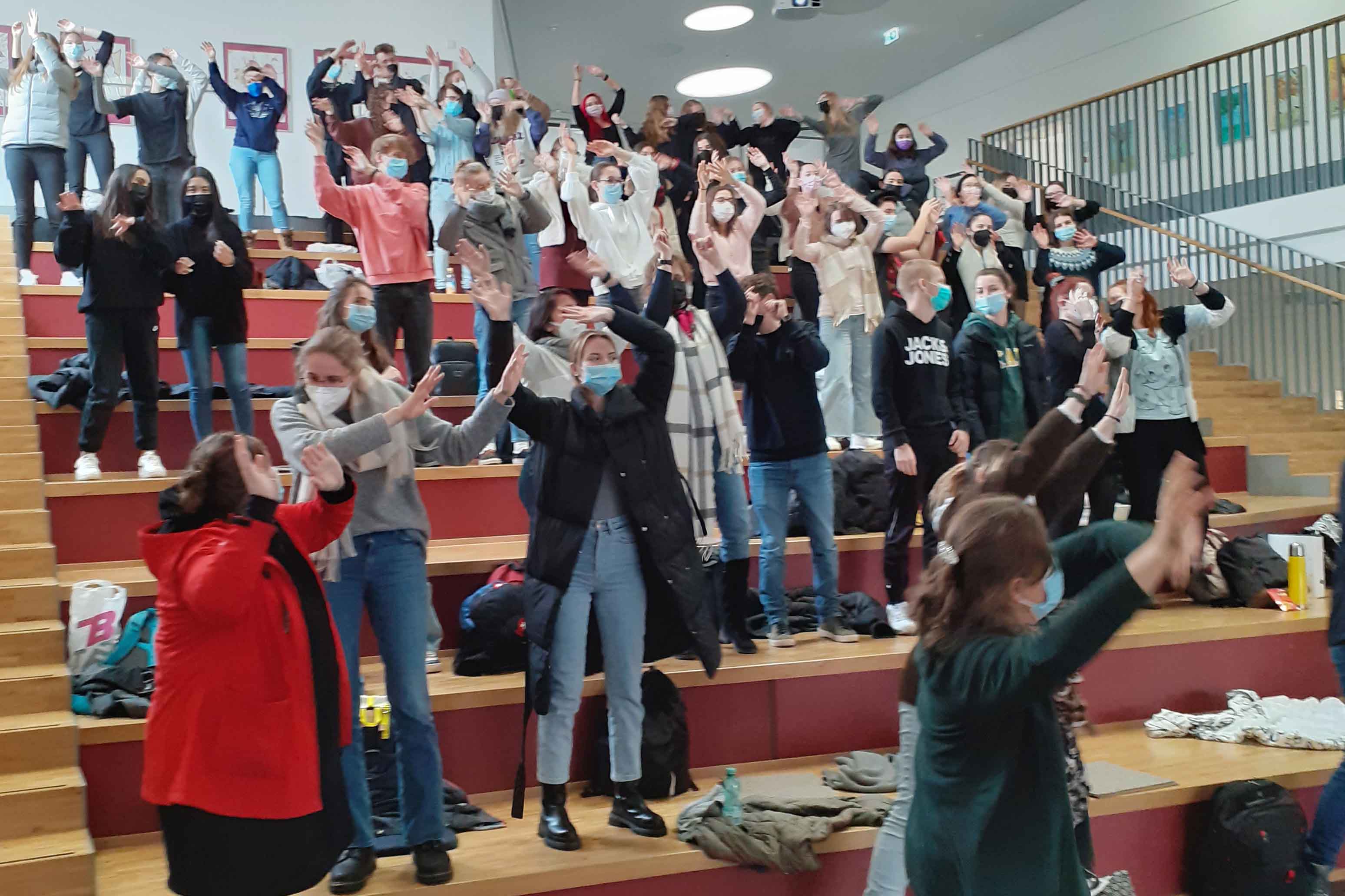 Um das Thema der Verbundenheit noch auszuweiten, fühlten wir auch den Brücken zur Welt nach – im gemeinsamen Sonnentanz nach dem Song „What a wonderful world“, gesungen von Rhoda Dakar. Abschnitte aus dem Sonnengesang von Franz von Assisi gaben zum Abschluss der Geschwisterlichkeit der ganzen Schöpfung Raum. „Ohne Alleingänge“: Das Motto gewann Ausdruck, Klang und Farbe.